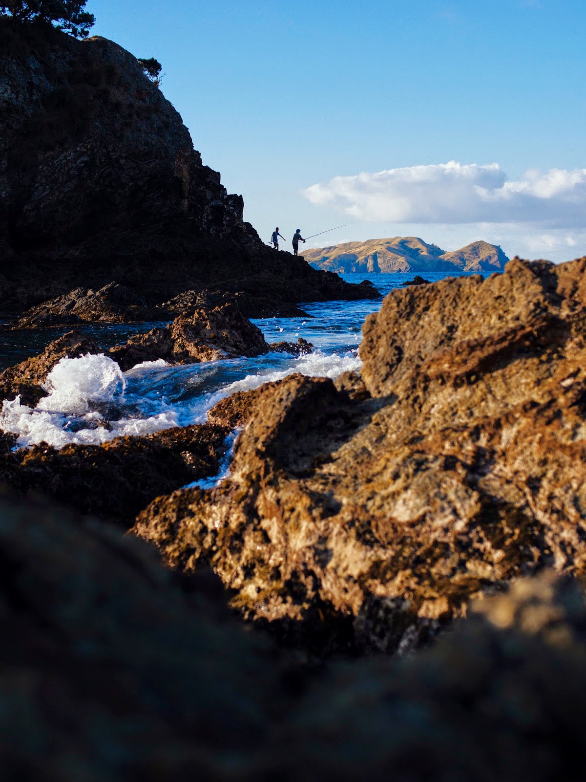 These are three very similar photos, taken at very similar times. But each very different at the same time. 1 - the tranquil setting for a peaceful fish. 2 - The action of rock fishing. 3 - A past time shared among friends.